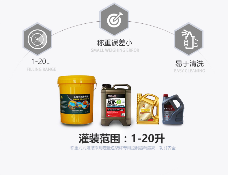 半自動油脂灌裝機適合各種不同粘稠度的油脂油類,能兼容瓶型、桶型的灌裝,可用于潤滑油、機油、花生油、食用油、大豆油、橄欖油等灌裝。