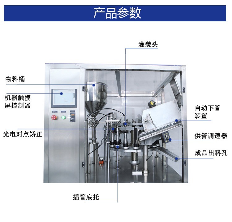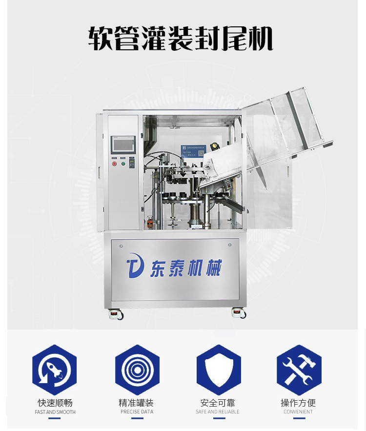 1.適用于醫(yī)藥、食品、化妝品、日用化工等行業(yè),對復(fù)合管,塑料管,鋁管進(jìn)行灌裝封尾。可將各種糊狀、膏狀、粘度流體等物料順利準(zhǔn)確地注入軟管中,并完成封尾和打批號、