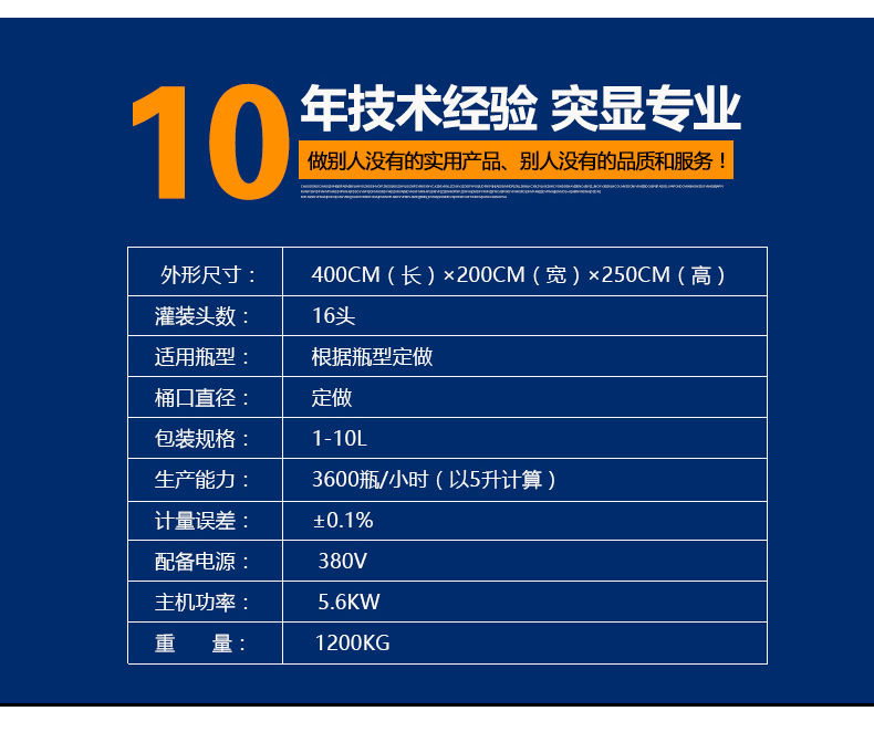 3、摒棄了傳統夾瓶口灌裝方式,采用下潛式灌裝下料口設計,邊灌邊提,避免了灌裝速度快產生細小水珠噴濺污染瓶口的現象產生。配合多段式快慢速灌裝,可以保障高速灌裝時全速灌裝,又可有效解決氣壓過高快速灌裝時泡沫溢瓶現象,變頻控制更,自我保護更安全,穩定,延長設備使用壽命。